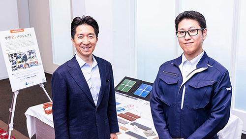 左から赤井祐仁さん(代表)、小菅夏樹さん。大正14年創業。1000年の歴史を誇る焼き物の街、愛知県常滑市で「未来への継承」を掲げ、高い技術力と復元力でタイルの製造・販売を行っている。「歴史的建造物に使われている赤レンガやタイルはどうしても老朽化する。そこで、元の質感や経年によって変化した風合いも含めて復元することをモットーとしている。かつては家にもたくさんタイルが使われていたが、最近は減少傾向なので、ぜひ子どもたちにタイルに触れて魅力を感じてほしい」(赤井氏)。
